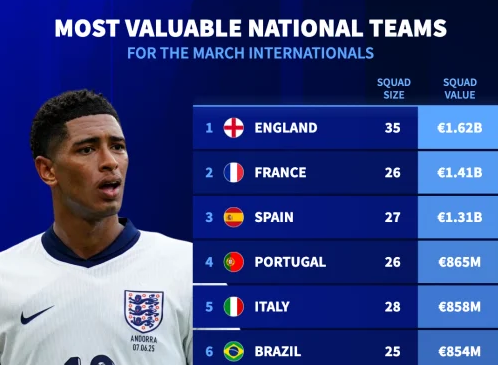 صراع المليارات قبل كأس العالم 2026.. إنجلترا الأغلى عالميًا