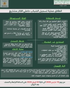 ودعت الجهات المشرفة جميع الشباب المهتمين إلى اغتنام هذه الفرصة والتقدم بأفكار مشاريعهم،
